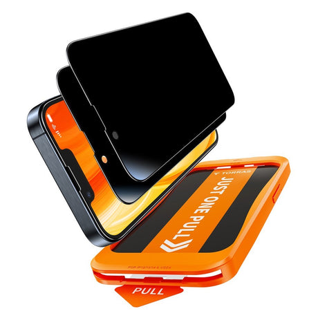- iPhone 16 - Full Fit Skærmbeskyttelse m. Installationsramme - Privacy Funktion - Gennemsigtig
