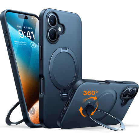 - iPhone 16 - Fleksibel Plastik Cover m. Roterende Kickstand - MagSafe Kompatibel - Sort