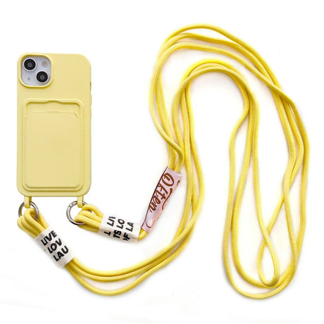 iPhone 14 Fleksibel Plastik Bagside Cover m. Kortholder & Strop - Gul