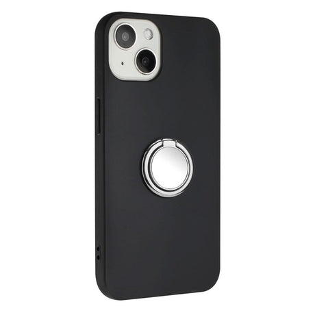 iPhone 15 Fleksibelt Plastik Bagside Cover m. Magnetisk Ring Kickstand - Sort m. Sort Ring