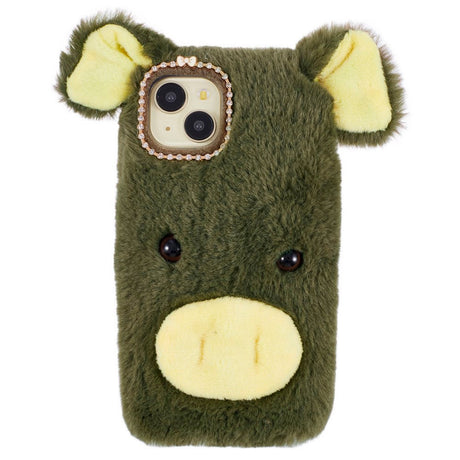 iPhone 15 Fleksibelt Plastik Bagside Cover m. Pels - Gris - Grøn / Gul