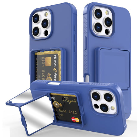 iPhone 16 Pro Fleksibelt Plastik Bagside Cover m. Kortholder & Indbygget Spejl - Blå