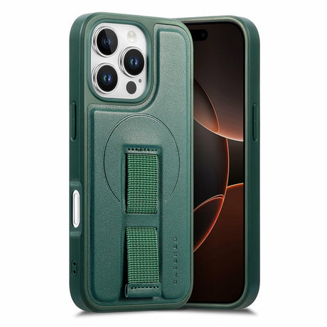 iPhone 16 Pro - Hårdt Plastik Cover m. Kunstlæder Bagside & Fingerrem - MagSafe Kompatibel - Grøn