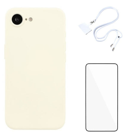 iPhone 16e Sæt m. Fleksibelt Plastik Bagside Cover - Skærmbeskyttelse - Strop - Hvid
