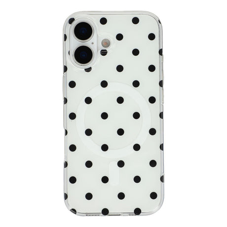 iPhone 17 Hybrid Mobil Cover m. Polka Design - MagSafe Kompatibel - Gennemsigtig / Hvid