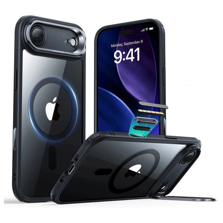 iPhone Air Classic Hybrid Stash Cover m. Kickstand - MagSafe Kompatibel - Gennemsigtig / Sort