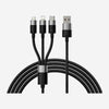 4in2 15W Multi-Charging Kabel - 2 x USB-C / Lightning / Micro USB 120cm - Sort