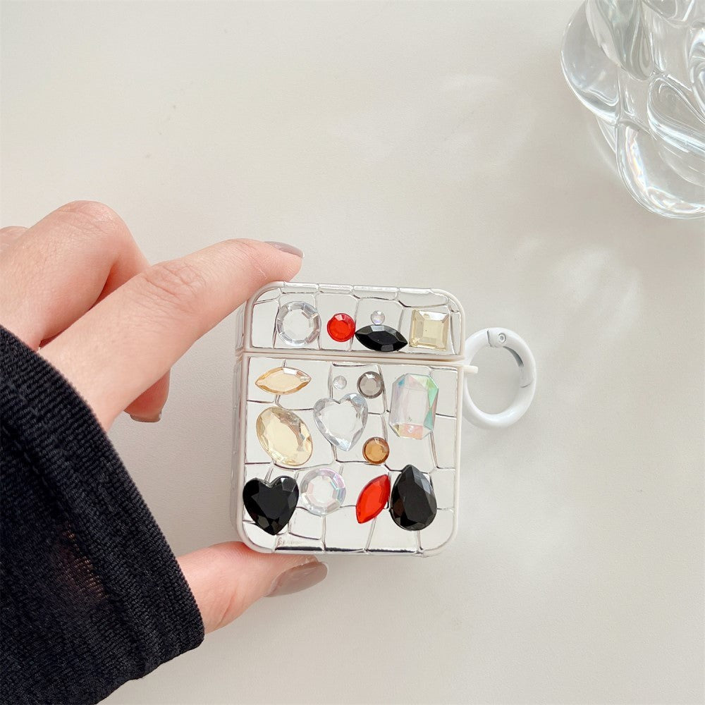 Apple AirPods (1 & 2. gen.) Fleksibel Plastik Cover m. Perle Udsmykning - Sølv er i restordre og vil blive sendt, så snart det er på lager igen.