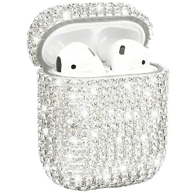 Giv dine Apple AirPods (1. & 2. Gen.) en kombination af stil og beskyttelse med dette elegante cover. Designet med glitrende rhinsten, som fanger lyset og tilføjer et sofistikeret touch, skiller dine høretelefoner sig ud fra mængden.