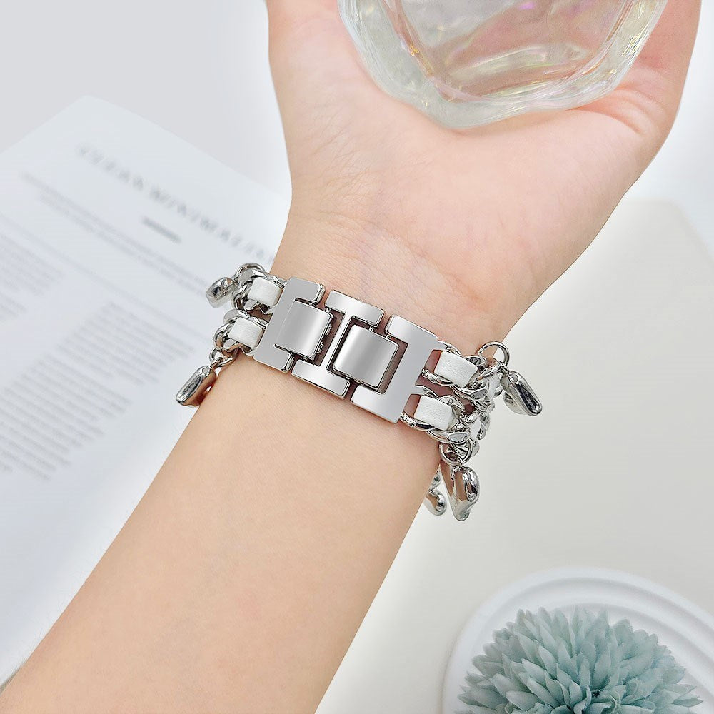 Oplev den perfekte blanding af stil og romantik med EIDERWOODs Metalrem til Apple Watch (38 / 40 / SE / 41 / 42mm). Denne rem skiller sig ud med et elegant snoet kædedesign, der kombinerer holdbart metal og vegansk læder, og tilføjer et sofistikeret udtryk til dit Apple Watch. De smukke sommerfugle- og blomstervedhæng giver et feminint og unikt touch.