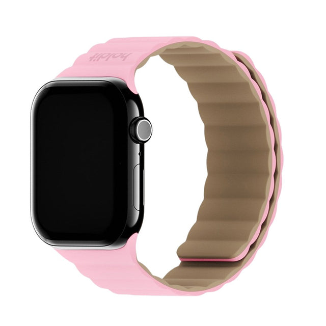 Apple Watch (42/44/SE/45/46/49mm) Holdit Silikone Rem m. Magnetlukning - Lyserød / Beige