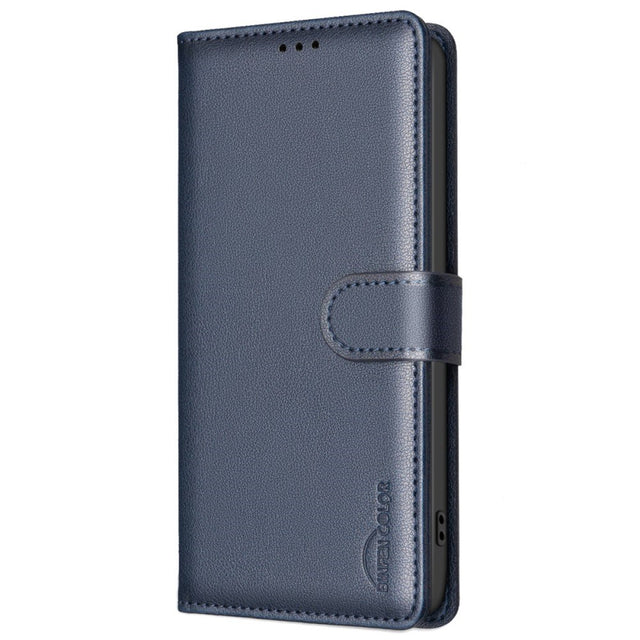 BINFEN Samsung Galaxy A36 (5G) Imiteret Læder Flip Cover m. RFID Blokering og Kortholder - Blå er i restordre og vil blive sendt, så snart det er på lager igen.