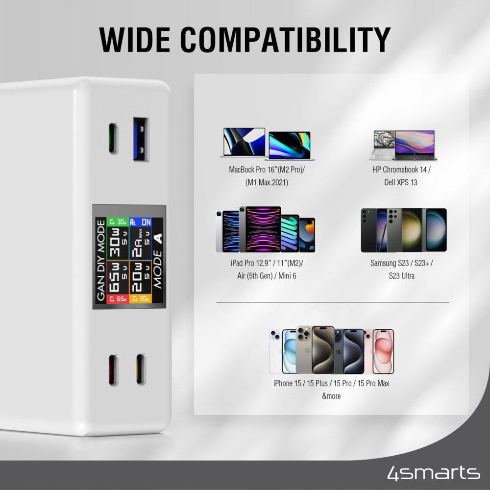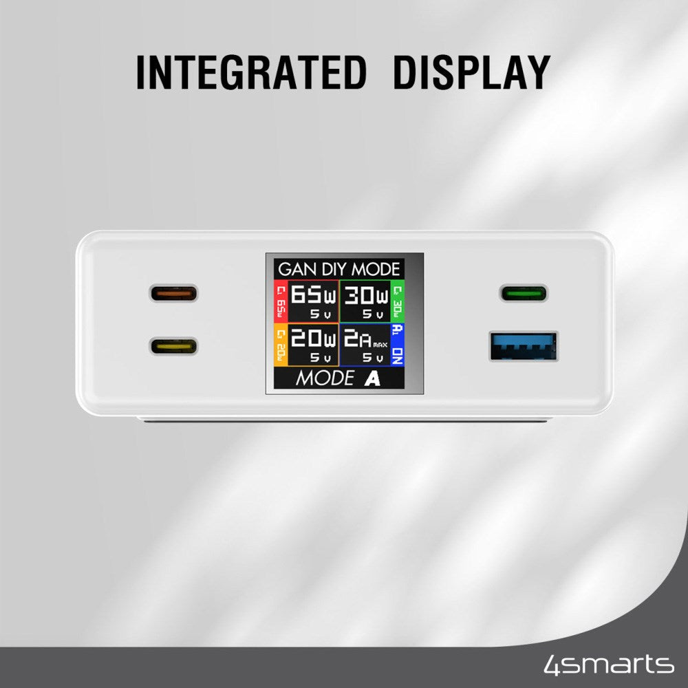 Bordoplader - 130W / 3x USB-C & 1x USB-A - 4smarts GaN DIY Mode - Hvid