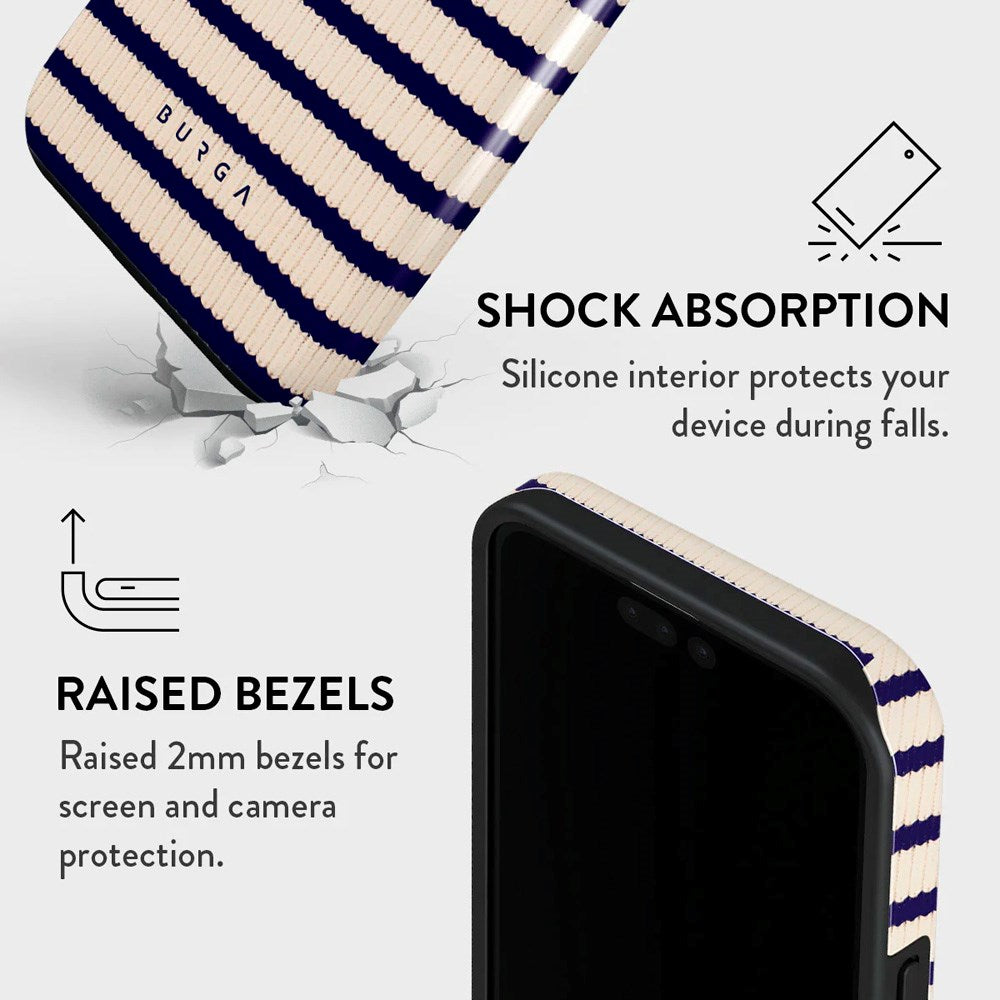 Burga kombinere et flot look med enestående beskyttelse i dette cover. Coveret består af en hård yderskal, lavet af plastik, der beskytter mod slag og stød, samt en inderside af støddæmpende silikone for optimal sikkerhed.