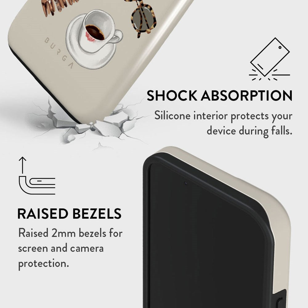 Burga kombinere et flot look med enestående beskyttelse i dette cover. Coveret består af en hård yderskal, lavet af plastik, der beskytter mod slag og stød, samt en inderside af støddæmpende silikone for optimal sikkerhed.
