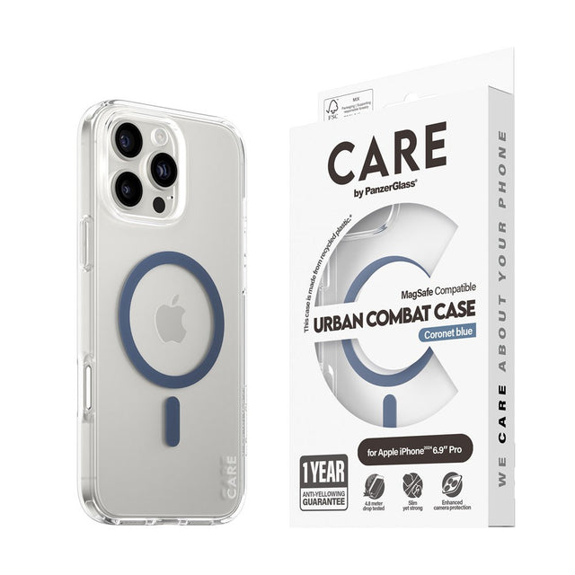 CARE by PanzerGlass iPhone 16 Pro Max FLAGSHIP Urban Combat Cover - MagSafe Kompatibel - Transparent / Coronet Blue