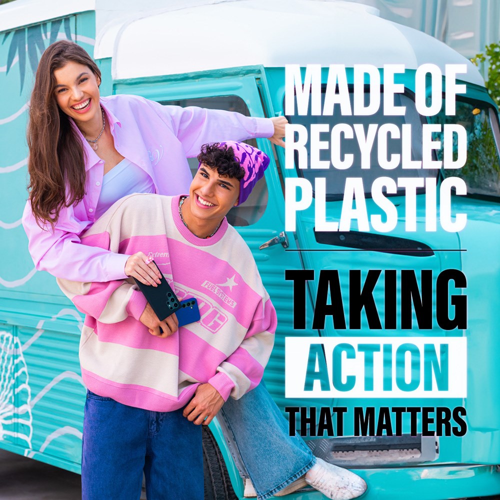 Her er et Samsung Galaxy S25+ (Plus) cover, der tilbyder både et klassisk og elegant look samtidig med god beskyttelse. Det er lavet af 100% genanvendt fleksibelt plast med en blød, mat finish.