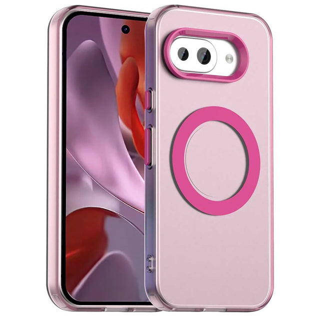 Google Pixel 9a Hybrid Plast Mobil Cover - MagSafe Kompatibel - Gennemsigtig / Lyserød