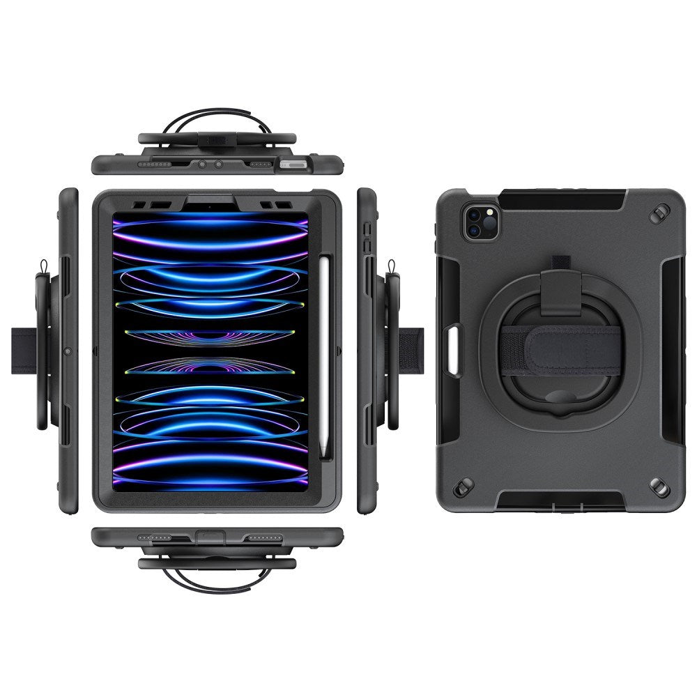 iPad Air 10.9-11" (2025-2020) / Pro 11" (2022-2018) Håndværker Cover m. Beskyttelsesfilm & Håndholder - Sort