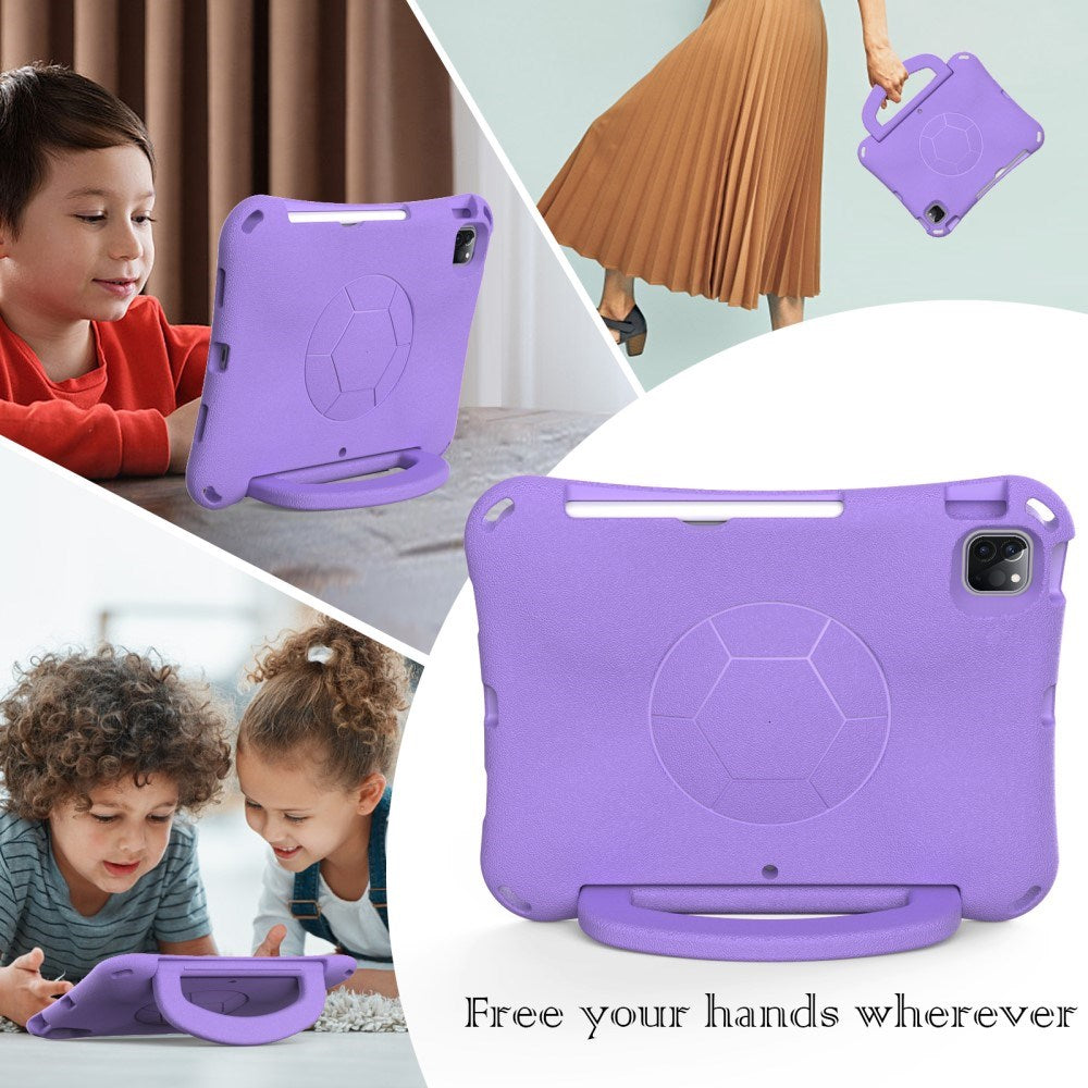 iPad Air 10.9" (2022 / 2020) / Pro 11" (2024-2018) Børne Cover - Fodbold - Kickstand & Håndtag - Lilla