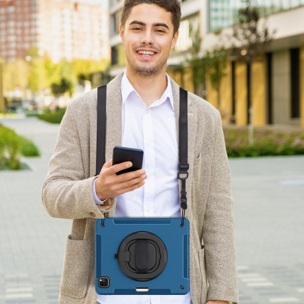 iPad Air 13" (2025 / 2024) / Pro 12.9" (2022 / 2021 / 2020 / 2018) Håndværker Cover m. Beskyttelsesfilm & Skulderstrop - Blå