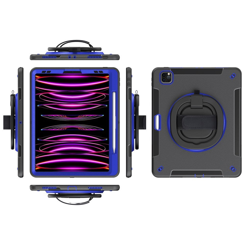 iPad Air 13" (2025 / 2024) / Pro 12.9" (2022 / 2021 / 2020 / 2018) Håndværker Cover m. Apple Pencil Holder & Skulderstrop - Sort / Koboltblå