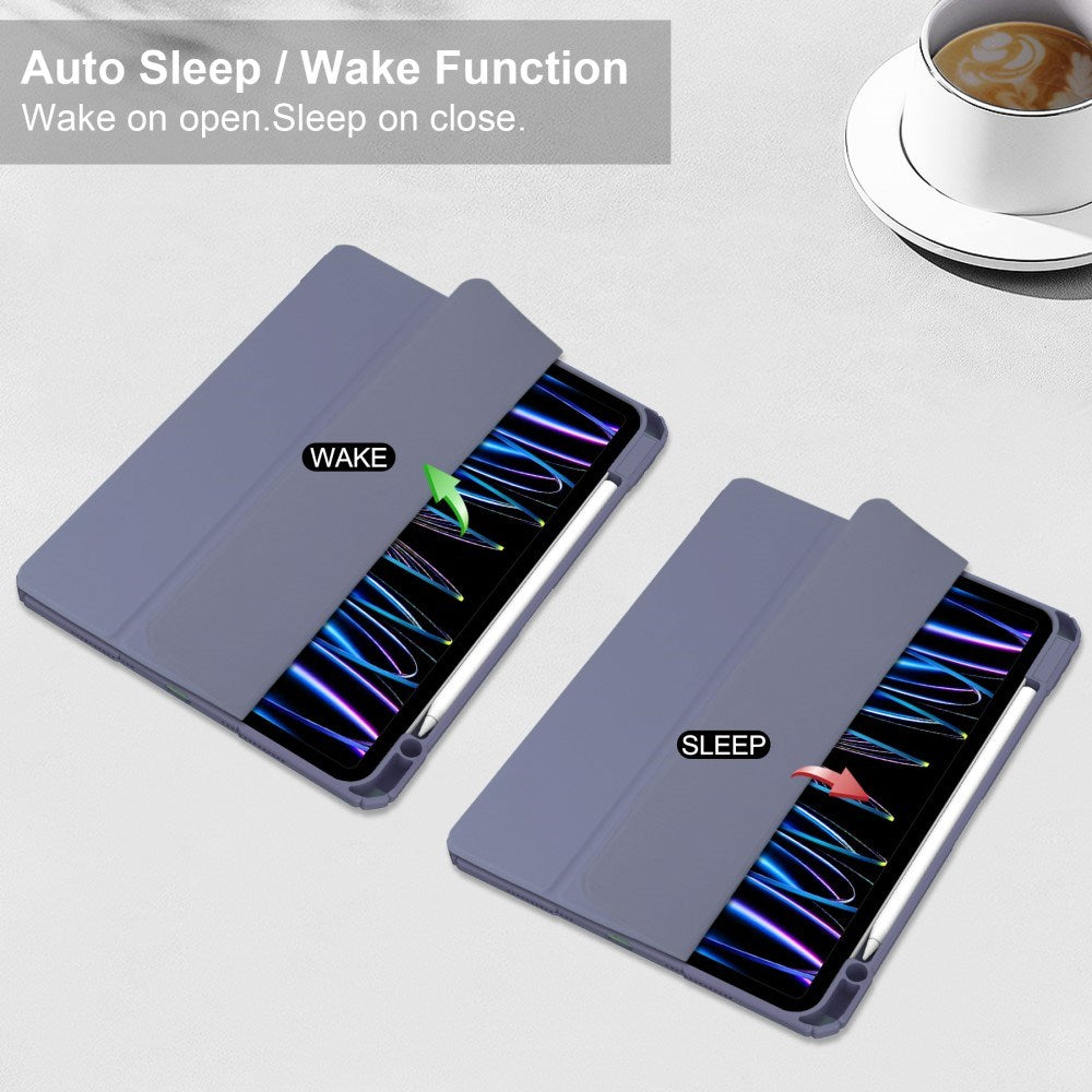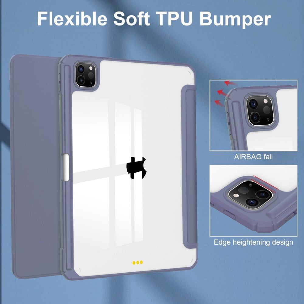 iPad Pro 11" (2025 / 2024) Hybrid Flip Cover m. Pen Holder - Lilla & Gennemsigtig
