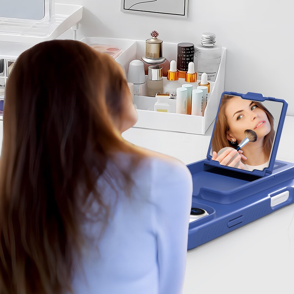 Indeni kortholderen finder du også et diskret spejl – perfekt til et hurtigt tjek af hår eller makeup. Når spejlet er slået ud, kan det desuden også bruges som en kickstand, således telefonen kan stå af sig selv - perfekt til f.eks. at se film.