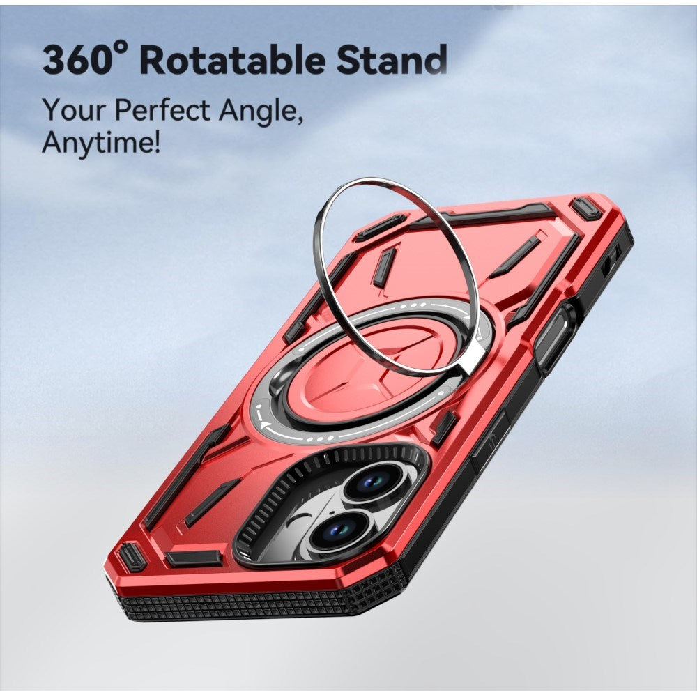 På bagsiden af coveret er der en udtagelig metalring, som kan bruges til at forbedre grebet om telefonen samt fungere som stander til film og serier. Ringen kan rotere 360° for maksimal fleksibilitet og kan nemt justeres til den ønskede vinkel. Den er også magnetisk, hvilket muliggør nem og sikker fastgørelse til diverse enheder, som f.eks. en bilholder.
