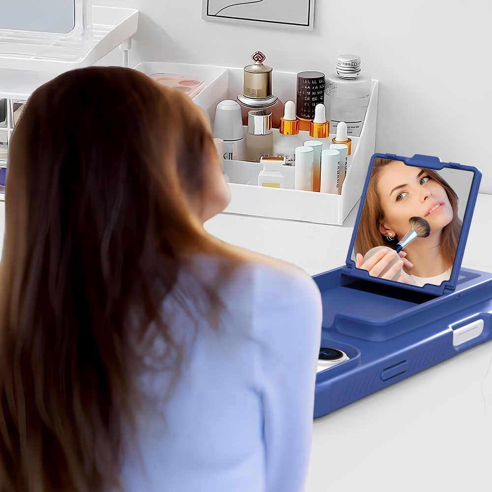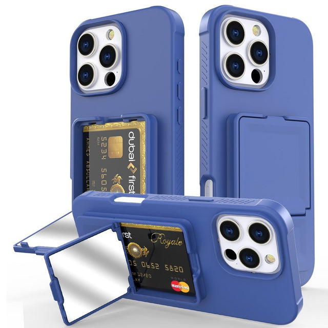 iPhone 16 Pro Max Fleksibelt Plastik Bagside Cover m. Kortholder & Indbygget Spejl - Blå
