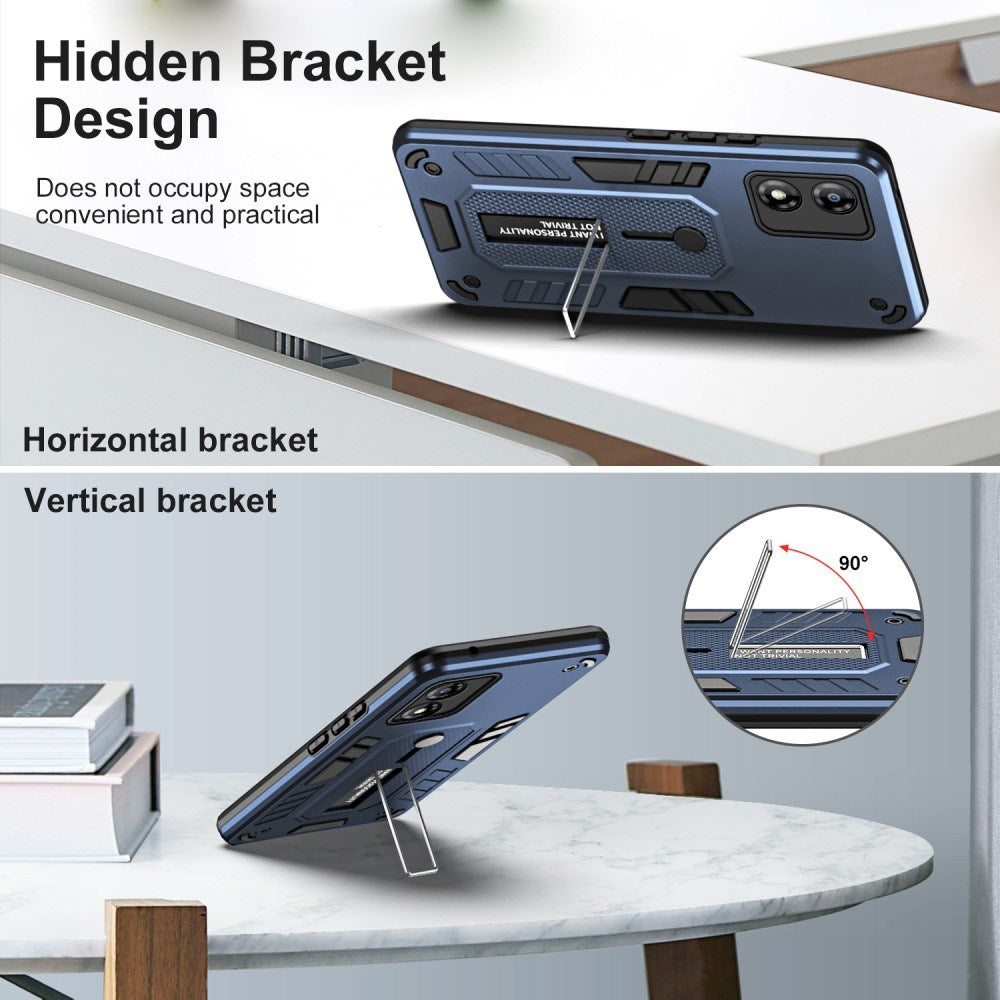 Motorola Moto E13 Håndværker Bagside Cover m. Fingerring & Kickstand - Blå
