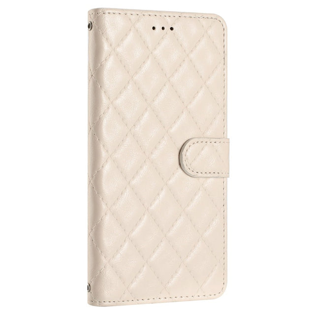 Motorola Moto G84 Læder Flip Cover m. Pung & Strop - Rhombus - Beige