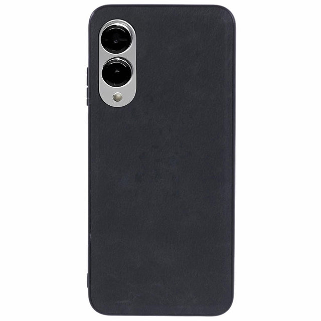 Designet er lavet af en robust kombination af plastik og kunstlæder. De fleksible plastikkanter langs siderne absorberer stød og mindsker risikoen for skader ved fald, mens den hårde plastbagside er betrukket med imiteret læder, hvilket giver et luksuriøst og behageligt greb. Det elegante og moderne udseende gør coveret til en perfekt accessory, samtidig med at det sikrer din telefon mod ridser og stød.