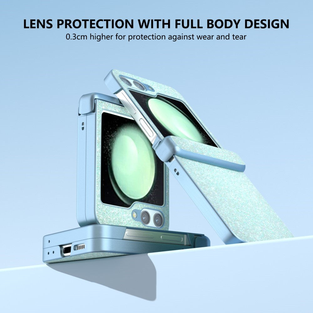 Samsung Galaxy Z Flip7 FE / Flip6 Læderbetrukket Glitrende Plastik Bagside Cover - Mint Grøn