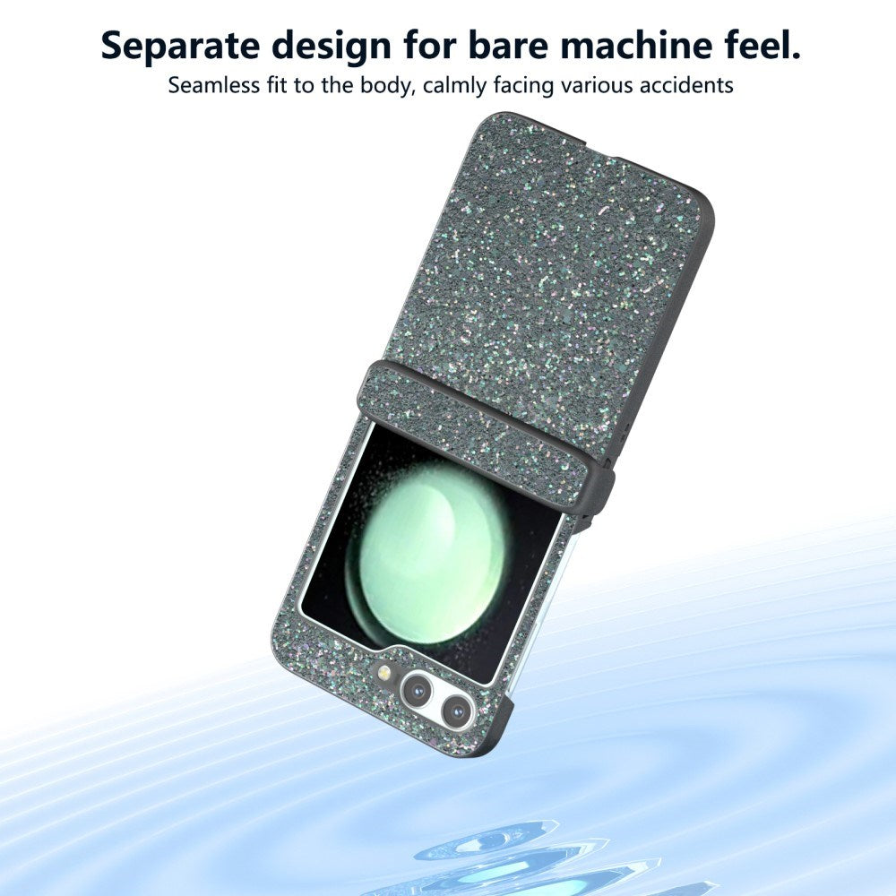 Samsung Galaxy Z Flip7 FE / Flip6 Læderbetrukket Glitrende Plastik Bagside Cover - Sort