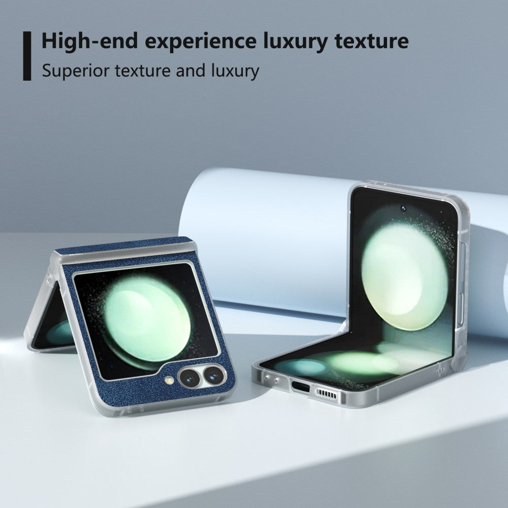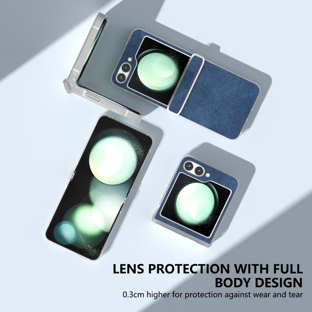 Samsung Galaxy Z Flip7 FE / Flip6 Læderbetrukket Plastik Bagside Cover - Blå