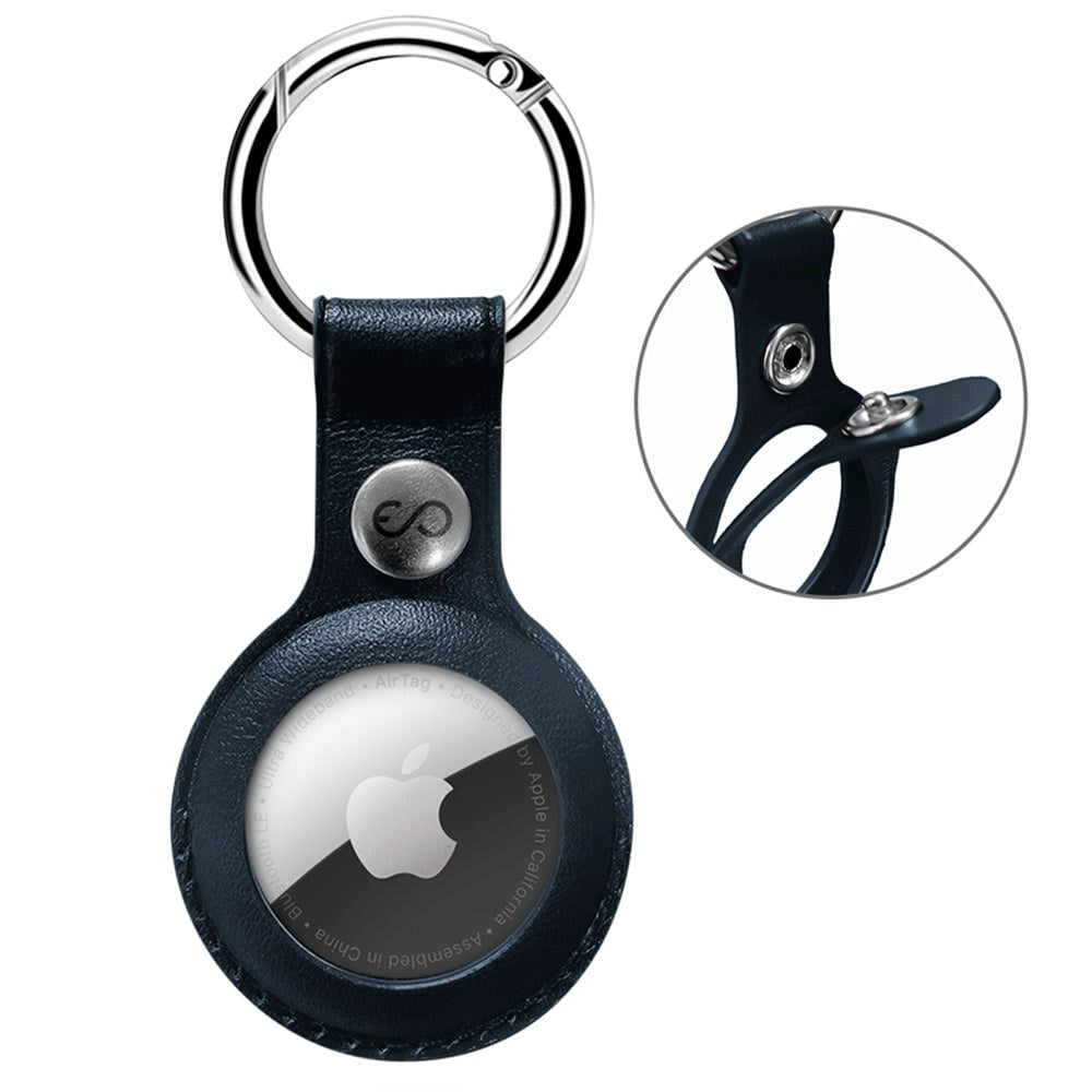 Eco Læder Cover til AirTag m. Nøglering - Blå