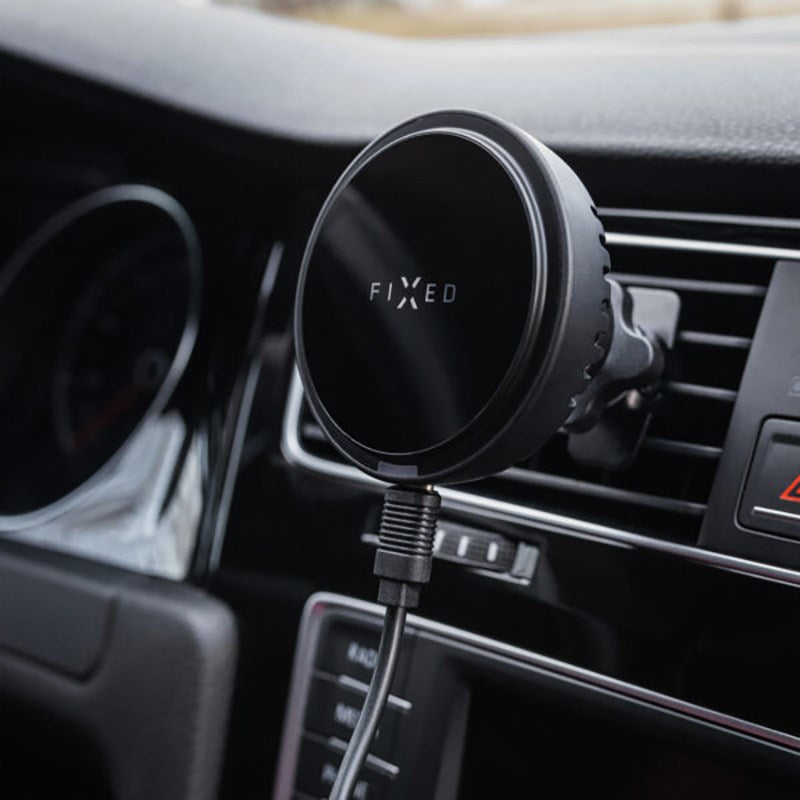 Her er en MagSafe kompatible mobilholder til bil fra mærket Fixed, der sørger for både at oplade, køle og holde din mobil på samme tid.