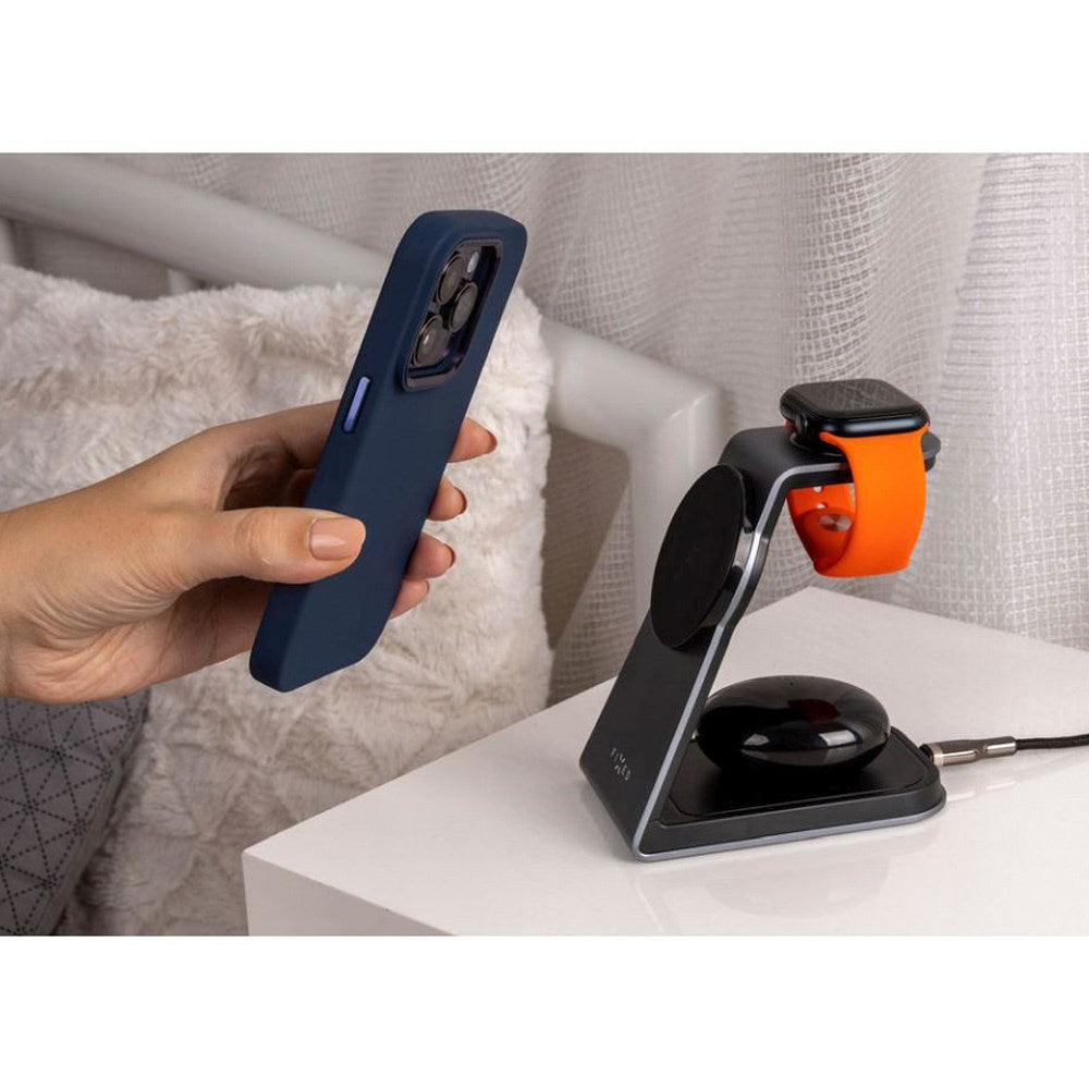 MagPowerstation Alu fra Fixed har et elegant aluminiums design og giver dig mulighed for at oplade alle dine enheder på ét sted. Denne trådløse oplader kan håndtere Smartwatch, True Wireless Headset og mobiltelefon, hvilket betyder, at du kun behøver én enhed til alle dine opladningsbehov og undgår en masse ledninger, da den kun kræver ét medfølgende kabel.