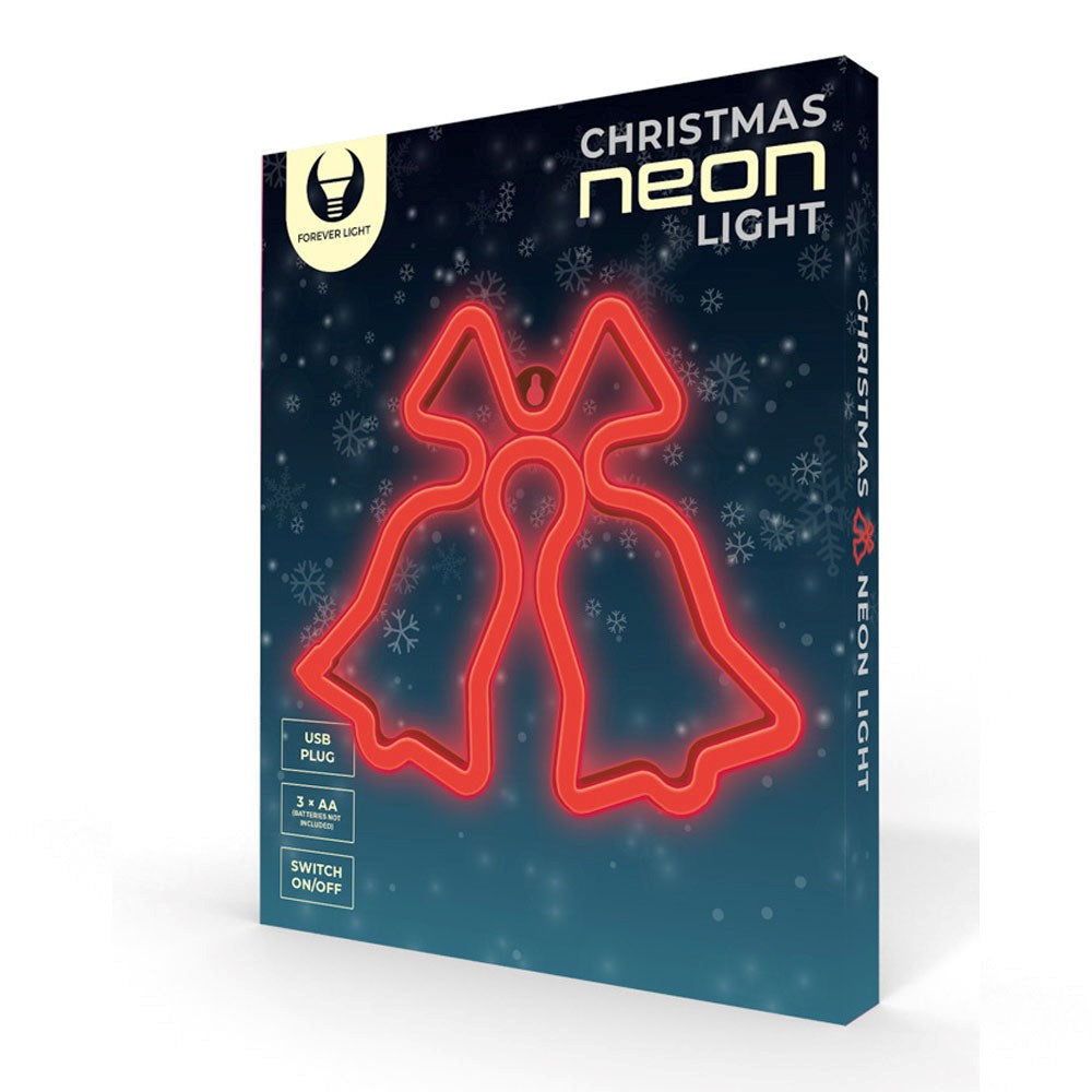 Light LED Neon Skilt Jul - Rødt Lys m. Juleklokker