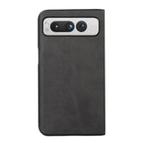 Google Pixel Fold Læderbelagt Plastik Bagside Cover - Sort