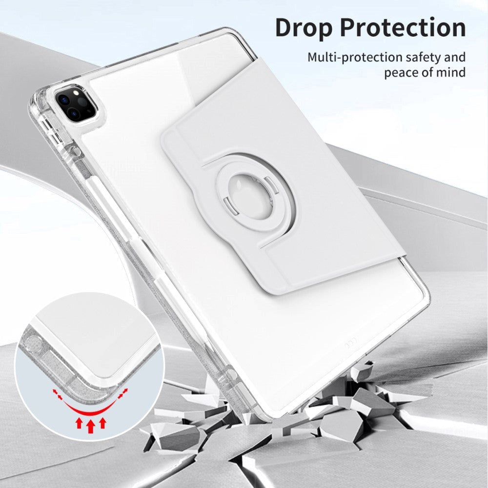 Bagsiden af coveret er konstrueret med en blanding af robust og fleksibelt plastik, der effektivt beskytter din tablet mod skader. Den gennemsigtige bagside tilføjer et stilfuldt touch til din iPad. Derudover er der en smart indbygget holder til din Apple Pencil.