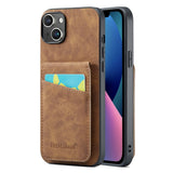 iPhone 13 Læderbelagt Plastik Bagside Cover m. Kortholdere og Ståfunktion - Brun