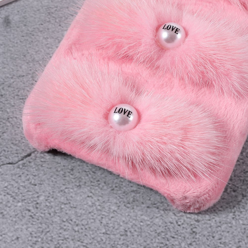 iPhone 13 Pro Plastik Bagside Cover - Plysbelagte Kærlighedsperler - Lyserød