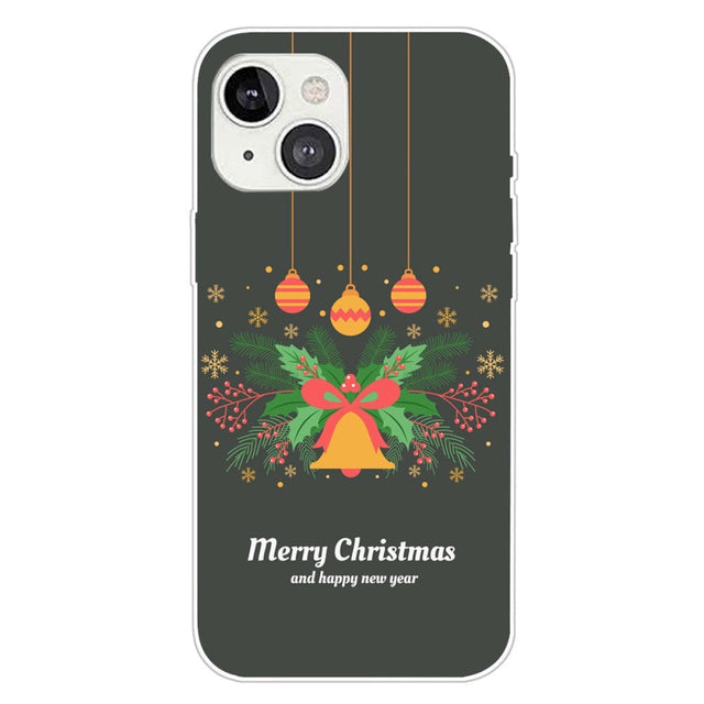 iPhone 15 Fleksibelt Plast Bagside Jule Cover - Merry Christmas - Julekrans og Juleklokke