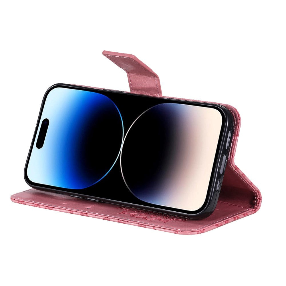 iPhone 15 Pro Læder Flip Cover m. Pung og Strop - Mandala Blomst - Lyserød
