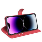 iPhone 15 Pro Litchi Læder Flip Cover m. Pung - Rød