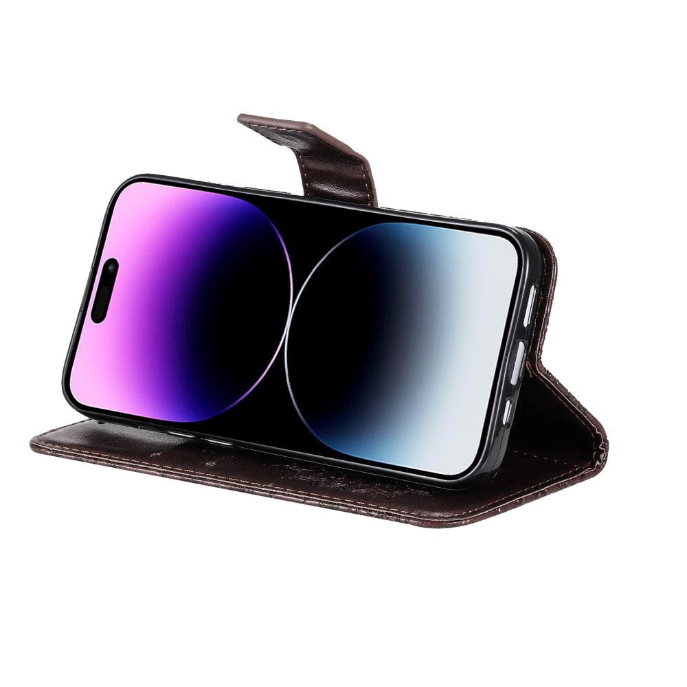 iPhone 15 Pro Max Læder Flip Cover m. Pung og Strop - Mandala Blomst - Brun