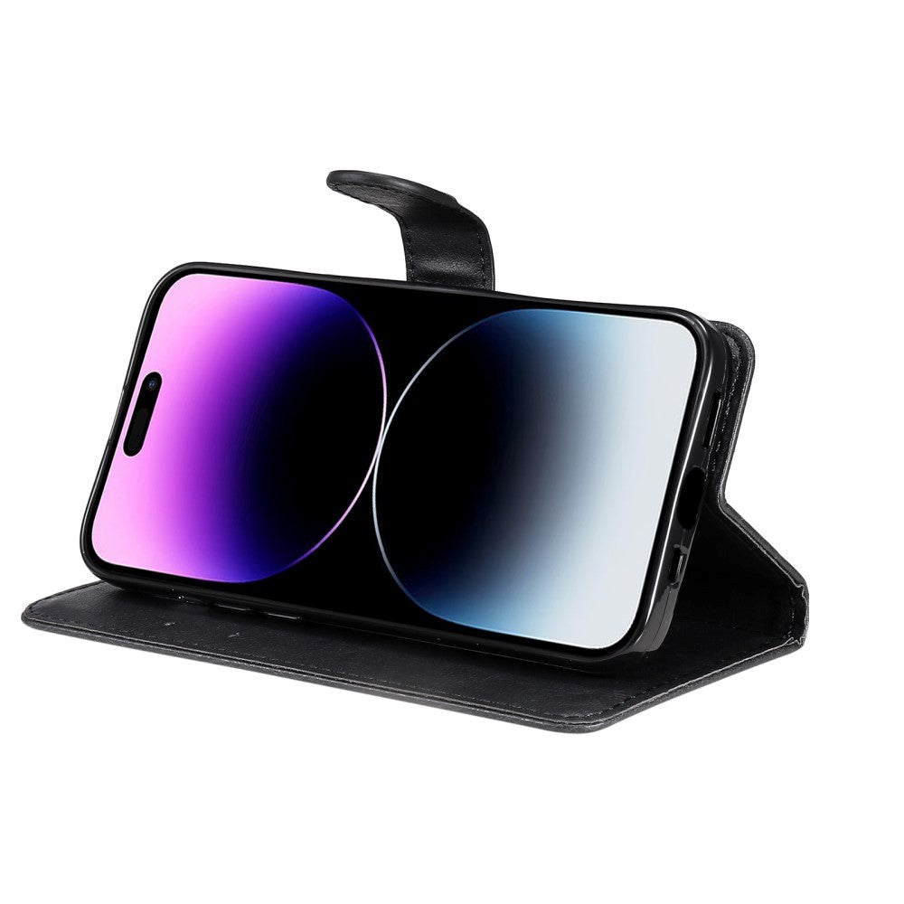 iPhone 15 Pro Max Læder Flip Cover m. Pung og Strop - Sort