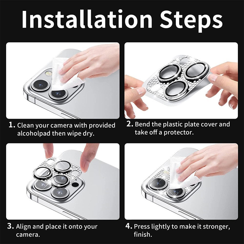 Kamerabeskyttelsen er lavet af en kombination af plastik og glas, som er beklædt med et flot lag rhinsten. Denne kamerabeskyttelse sikrer din kameralinse mod ridser, skidt samt andre skader.